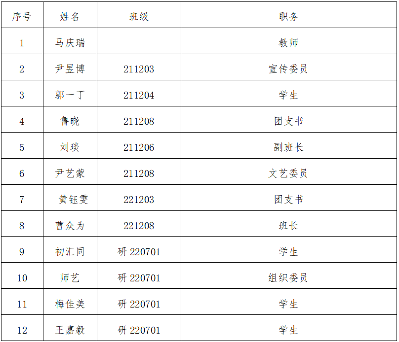 为了认真贯彻党的发展党员工作方针,充分发扬民主,增加发展党员工作的透明度,把好发展党员质量关,确保新党员质量,经本学院党委研究,现将已列入2024年度发展计划,且通过党支部民主测评的发展对象在全院范围内公示。公示时间为5个工作日(2024年9月10日至2024年9月14日)。在公示期内,党内外群众如对发展对象有意见,请以真实单位、姓名,用书面、电话等形式如实反映情况。群众反映的问题可受到法律保护,我们将严格保密。
