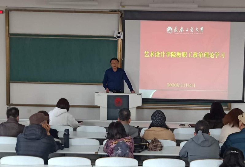 党委在艺术楼333教室集中开展政治理论学习活动。学院全体教师参加,会议由学院党委书记杨峰主持。