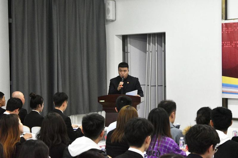 大会第五项:学院第十九届学生会执行主席王希宇作工作展望,同时希望新的主席团成员能够“在其位、谋其政、担其责”,并通过携手合作,把团委和学生会的工作做好。