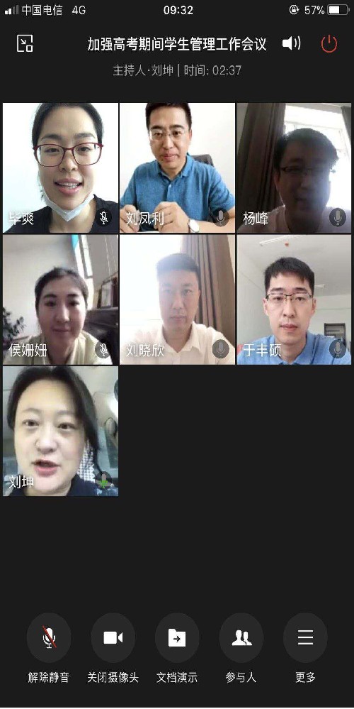 党委书记杨峰,专职组织员刘凤利参加会议,安排布置高考期间学生管理工作。她指出,高考关系到千家万户,特别是广大学生的切身利益,社会各界和广大人民群众高度关注,为了维护高考公平,也为了保护学院学生,大家一定要做好高考期间的学生管理工作。一是要加强对学生的诚信教育,通过企业微信等云视频会议软件做到对学生考试教育内容的全员参与、全面覆盖;二是要完善各年级管理措施,充分发挥党员和学生干部作用,认真排查各年级可能存在的问题和隐患,通过手机定位软件及时掌握学生行踪,发现异常情况及时上报;三是突出各年级问题导向,细化工作方案,各年级辅导员在对学生进行考试诚信教育的同时,要结合本年级特点制定可行的工作方案,从机制上形成约束,要求学生务必要遵守高考纪律,杜绝参与高考替考等舞弊行为。