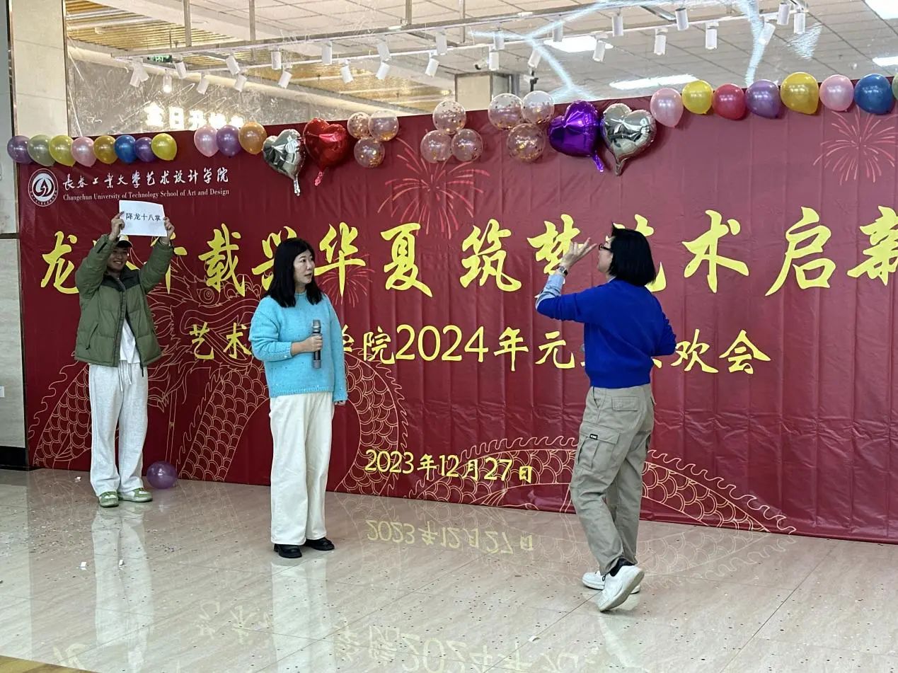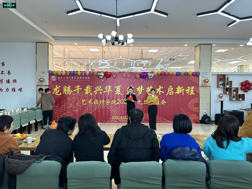 于12月27日举行了“龙腾千载兴华夏,筑梦艺术启新程——2024年元旦联欢会”,学院领导以及学院四个系、一个中心、两个办公室的教师欢聚一堂,同庆佳节。