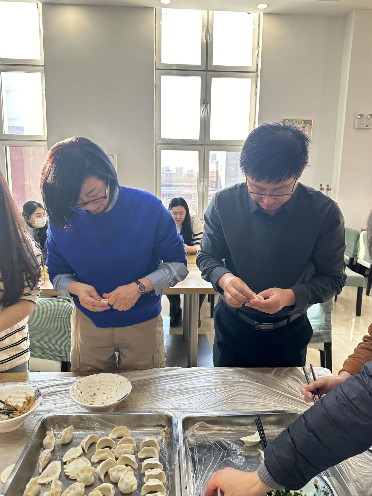在热闹的游戏过后,大家一起包饺子,边包边聊天,有说有笑,和谐欢快,进一步增进了学院教职工之间的交往交流,增强了大家的凝聚力。