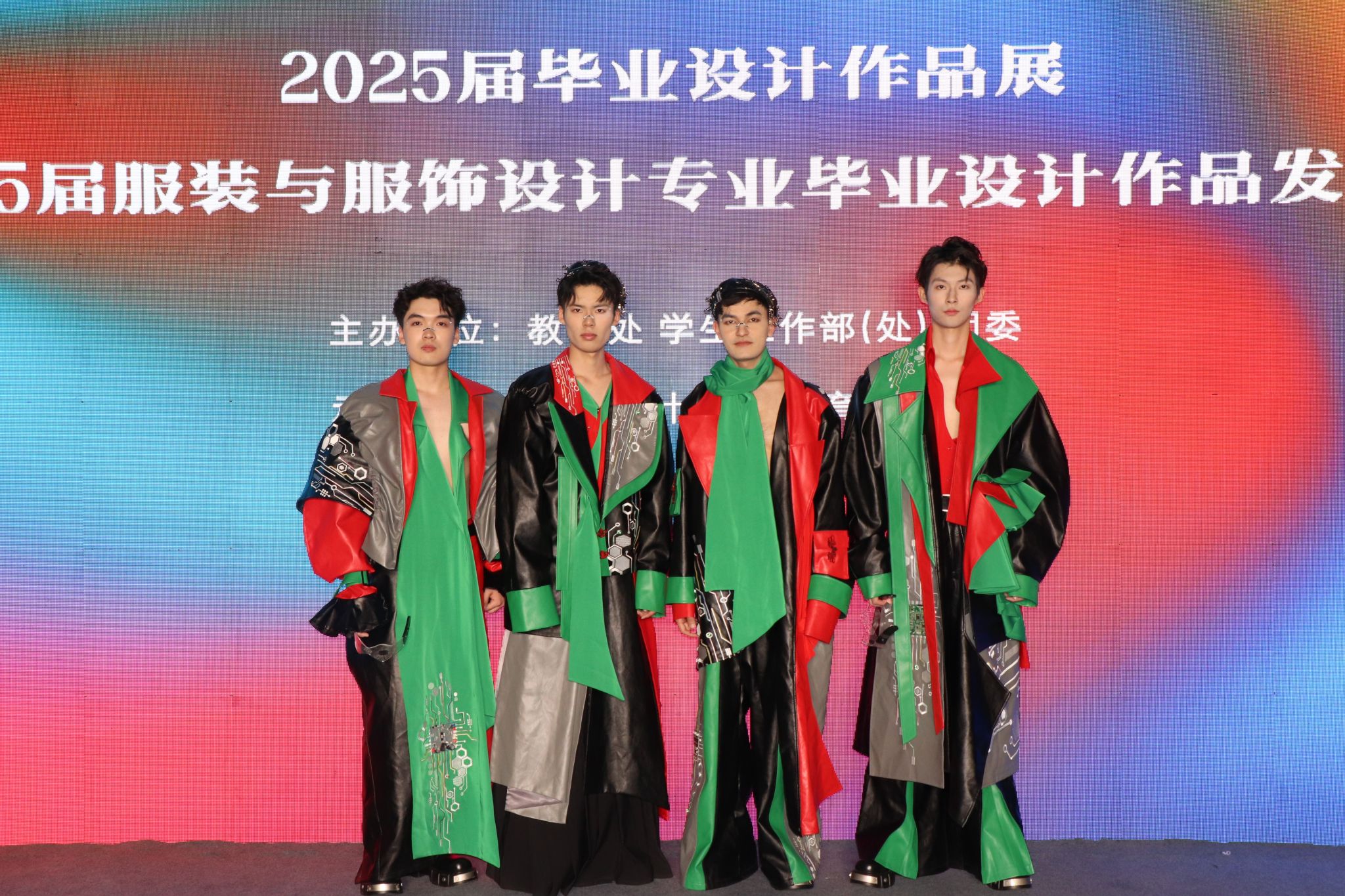 本次活动集中呈现了400余件毕业设计作品,涵盖服装与服饰设计、环境设计、视觉传达设计、动画等专业方向。作品不仅是学院践行“艺术融合技术、设计传承文化”教学理念的立体化呈现,更是学校构建“学科交叉+文化浸润+价值引领”特色美育生态的生动实践。近年来,学院以应用型人才培养为核心,在课程思政建设与专业学科竞赛中屡创佳绩。凭借卓越的人才培养质量与丰硕的创新成果,在2025中国国际大学生时装周上再次荣膺“人才培养成果奖”和“高校时尚教育成果展示视觉设计奖”。