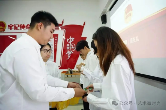 学院团委学生副书记李帅兵为新团员颁发团员证和团徽。