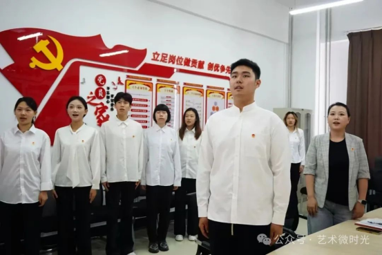 在艺术楼302会议室召开“青春为中国式现代化挺膺担当”2025年入团仪式。学院团委书记侯天放,学生团委副书记刘芹逸、李帅兵及新团员代表参加活动。