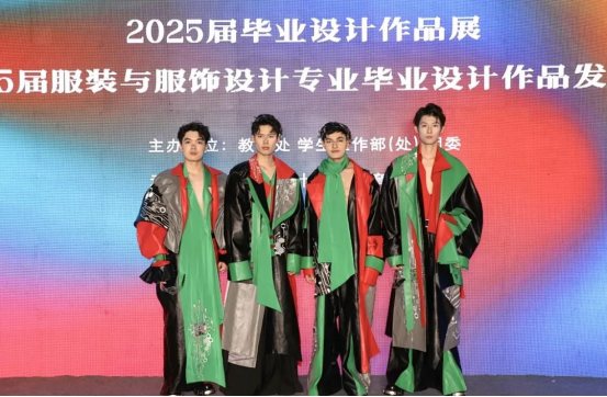 本次活动集中呈现了400余件毕业设计作品,涵盖服装与服饰设计、环境设计、视觉传达设计、动画等专业方向。作品不仅是学院践行“艺术融合技术、设计传承文化”教学理念的立体化呈现,更是学校构建“学科交叉+文化浸润+价值引领”特色美育生态的生动实践。近年来,学院以应用型人才培养为核心,在课程思政建设与专业学科竞赛中屡创佳绩。凭借卓越的人才培养质量与丰硕的创新成果,在2025中国国际大学生时装周上再次荣膺“人才培养成果奖”和“高校时尚教育成果展示视觉设计奖”。