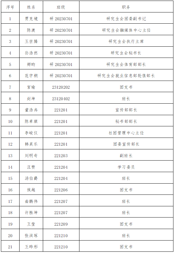 为了认真贯彻党的发展党员工作方针,充分发扬民主,增加发展党员工作的透明度,把好发展党员质量关,确保新党员质量,经本学院党委研究,现将已列入2025年度发展计划,且通过党支部民主测评的发展对象在全院范围内公示。公示时间为5个工作日(2025年3月20日至2025年3月26日)。在公示期内,党内外群众如对发展对象有意见,请以真实单位、姓名,用书面、电话等形式如实反映情况。群众反映的问题可受到法律保护,我们将严格保密。
