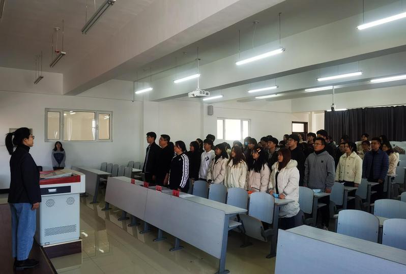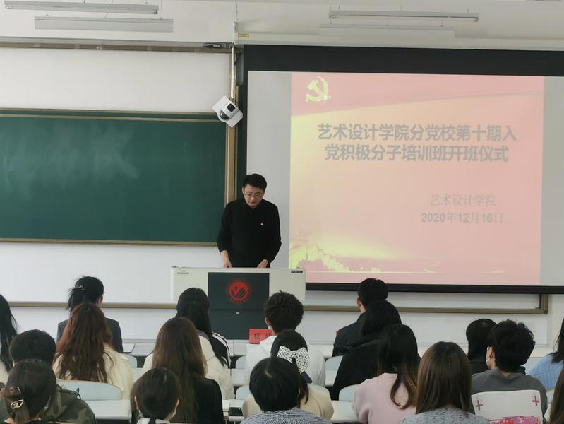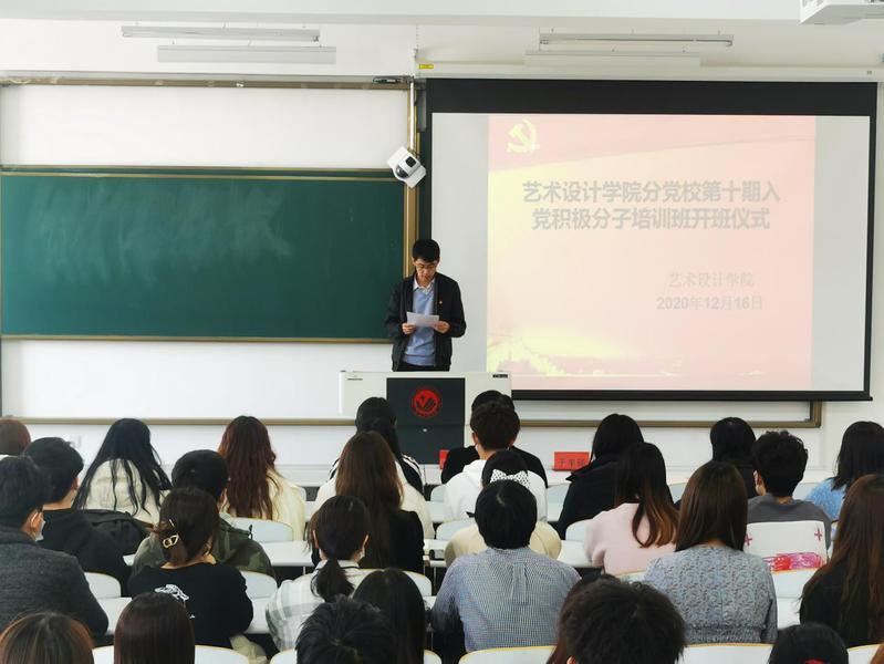 第十期分党校开班仪式在艺术楼333阶梯教室举行。会议由学生党支部书记毕爽主持。出席开班仪式的领导和老师有学院党委书记杨峰、党委副书记刘坤、2019级辅导员于丰硕,第十期分党校49名学员参加开班仪式。