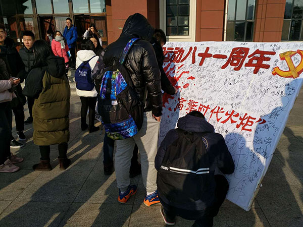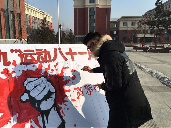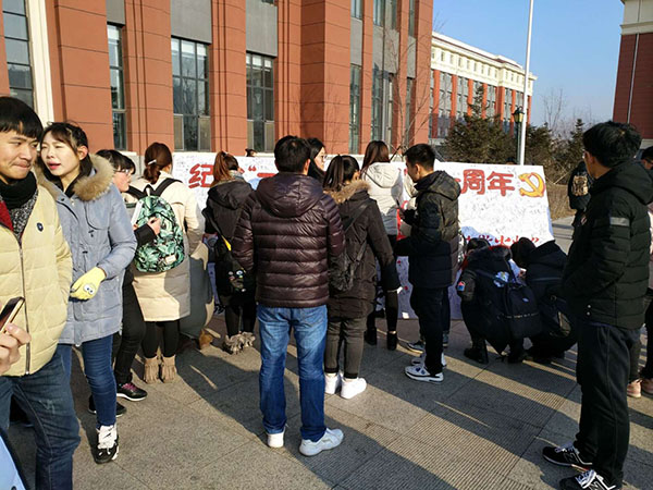 12月9日,艺术设计学院、纺织服装学院学生会在北湖校区开展了纪念一二九运动八十一周年“秉承先辈遗志,高擎时代火炬”的主题签名活动。主目的是为弘扬以“爱国主义”为 核心的伟大民族精神,唤醒广大青年学子的爱国情怀,增强大学生的光荣感、责任感和使命感表达自己的决心。