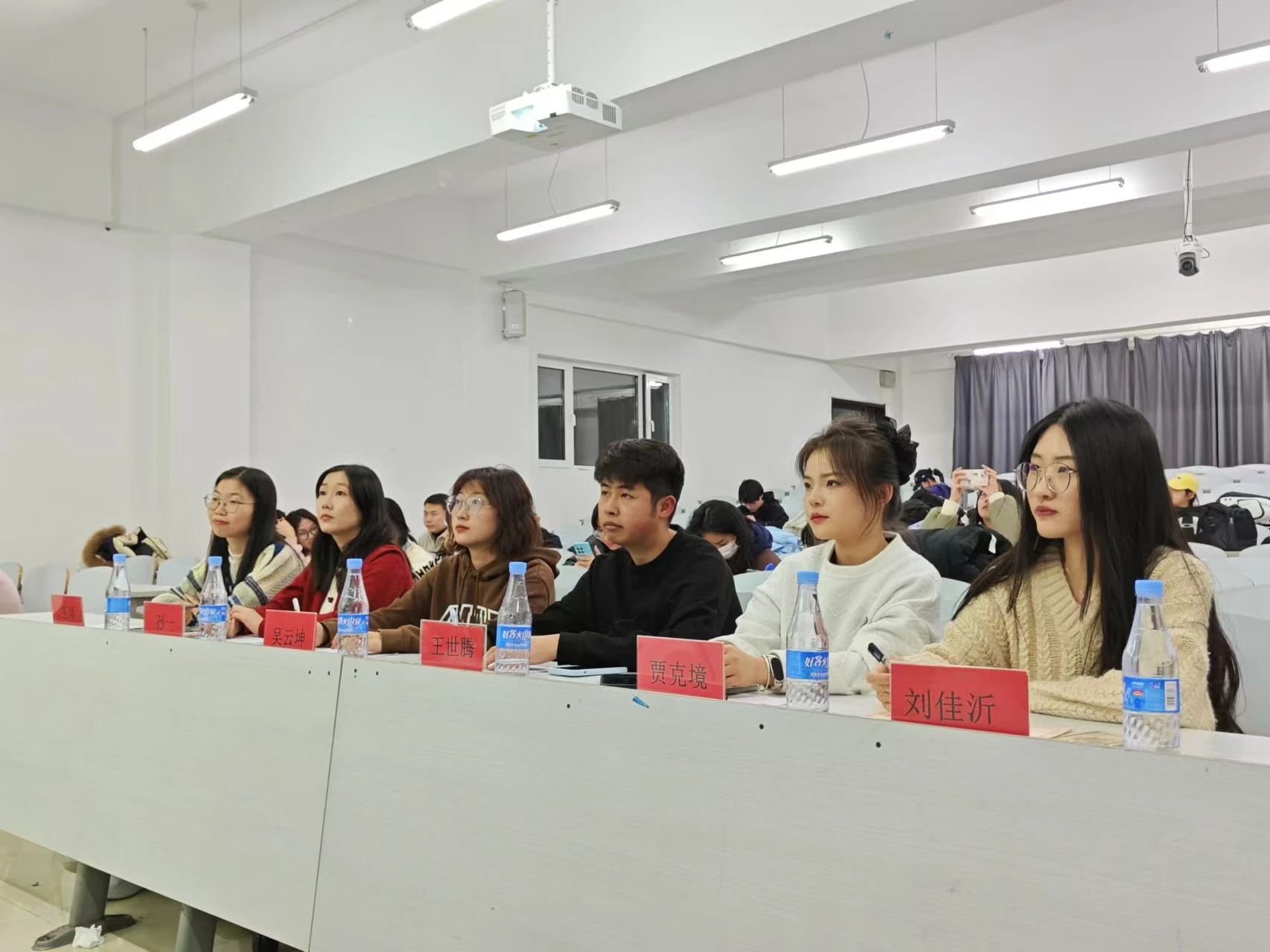 第五届研究生会学生团委副书记贾克境、执行主席王世腾、轮值主席刘佳沂。同时,外国语学院第五届研究生会团委副书记吴云坤,轮值主席孙一,学习部部长王琴作为特邀评委出席了此次活动。