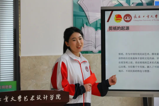 在“指尖传薪”实践环节,学生讲解员将剪纸艺术与学校特色深度融合,指导师生创作“红心向党”主题剪纸作品,师生团队更以学校标志性主楼建筑为蓝本,通过集体创作完成大型剪纸作品《工大剪韵》,并将“爱国敬业,求实创新”的校训篆刻于作品核心位置,以指尖技艺传承校训精神,形成兼具艺术价值与教育意义的集体成果。活动现场,传统非遗与现代校园文化碰撞出独特火花,展现了“艺术+非遗”的无限创意。