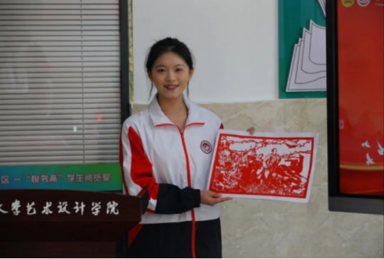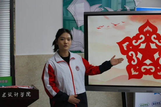 活动现场,学生讲师团以中国人民抗日战争暨世界反法西斯战争胜利80周年为背景,通过原创系列剪纸作品《烽火史诗》展开沉浸式讲解。飞夺泸定桥的壮烈场景、红船初心的历史定格、井冈星火的革命精神,在纤薄红纸与镂空光影中焕发新时代感染力。配合《青春中国》主题诗朗诵的磅礴声韵,非遗技艺与红色叙事交相辉映,构建起可触可感的“行走的思政课堂”。