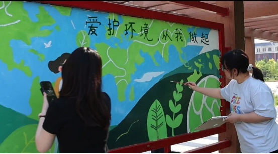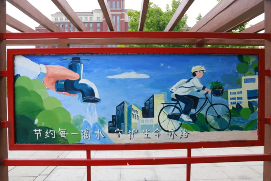 调色盘里盛满的是绿水青山的生态理想,笔触间流淌的是强国有我的青春誓言。志愿者们以“节水循环”为主题,勾勒出清泉绕梁、生生不息的生态文明图景;以“匠人图谱”为蓝本,镌刻下精益求精、追求卓越的时代工匠精神。当“粒粒皆辛”的麦穗与“守护地球”的绿树在长廊相遇,抽象的育人理念在艺术的诠释中变得可触可感,青年学子用创意与汗水共同谱写了一曲美育与劳育交融的青春赞歌。这不仅是一次艺术创作,更是一堂行走的思政课,展现了新时代青年将个人成长融入国家发展的生动实践。