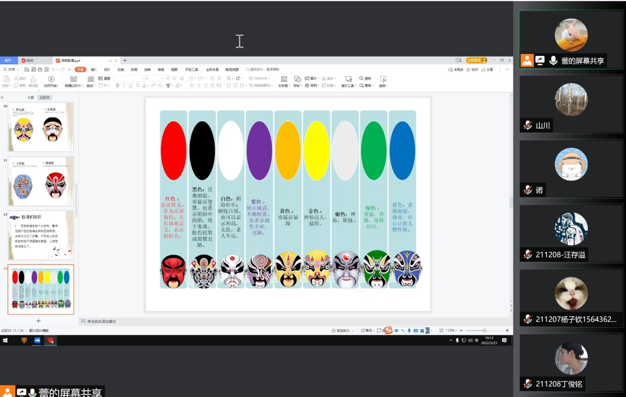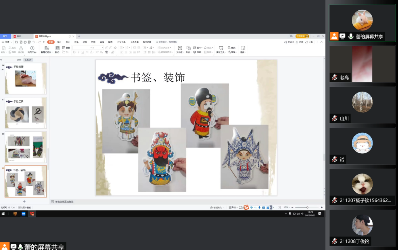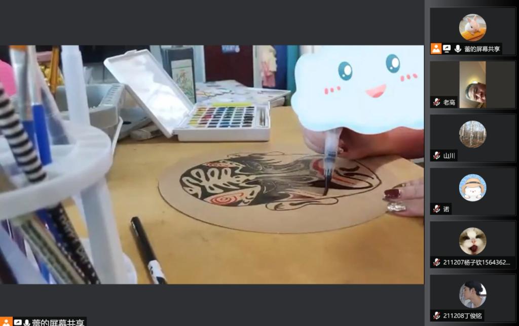 3月23日晚19:00时,《百变脸谱》由艺术设计学院教师张蕾蕾老师主讲。云端300余人共同观看讲座,张蕾蕾老师从认识中华民族的瑰宝——京剧脸谱入手,亲自示范绘制京剧脸谱,指导同学们利用业余时间以京剧脸谱为范本制作装饰画和书签作品,疫情期间丰富自己的业余文化生活。